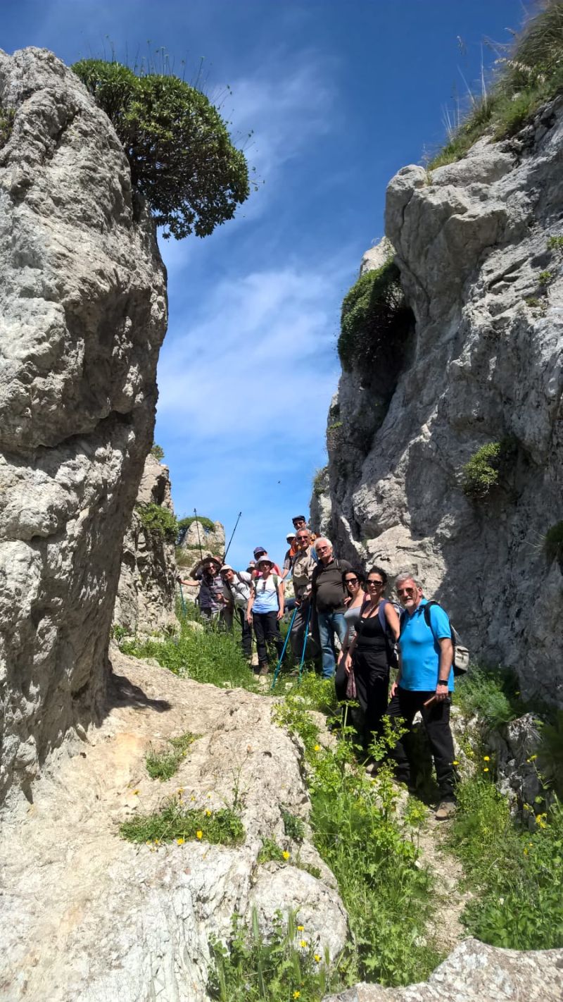 Il 25 aprile 2018 il club ha voluto organizzare per i soci un’escursione inedita in una località che agli aspetti paesaggistici veramente unici abbina un’importanza storico-archeologica tra le più rilevanti in Sicilia: l’antico insediamento del Monte Iato. Dal centro abitato di San Cipirrello si è percorso il versante sud del monte sino a raggiungere la vetta posta a 852 m. Dall’ampio piano inclinato che ne costituisce la parte più elevata un’ampia terrazza offre un panorama mozzafiato che spazia dalla Rocca Busambra al golfo di Castellammare e a Capo San Vito, dai monti della Conca d’Oro alla Rocca d’Entella, dalla Valle dello Jato a quella del Belice. L’antico insediamento che si ammira è il risultato di popolazioni diverse che vissero e costruirono qui sin dal 1° millennio a.C. ma le cui tracce più evidenti e più illustri appartengono al periodo greco di cui rimangono il Teatro, il Tempio, l’Agorà e tutto un sistema viario che ancora testimonia la floridezza del luogo prima che Federico II di Svevia non lo radesse al suolo definitivamente alla metà del 1200. Il ritorno è avvenuto dal versante Nord tra ripide pareti verticali ed interessanti formazioni rocciose. Un’esperienza veramente entusiasmante che una volta tanto non ha fatto rimpiangere il mare.