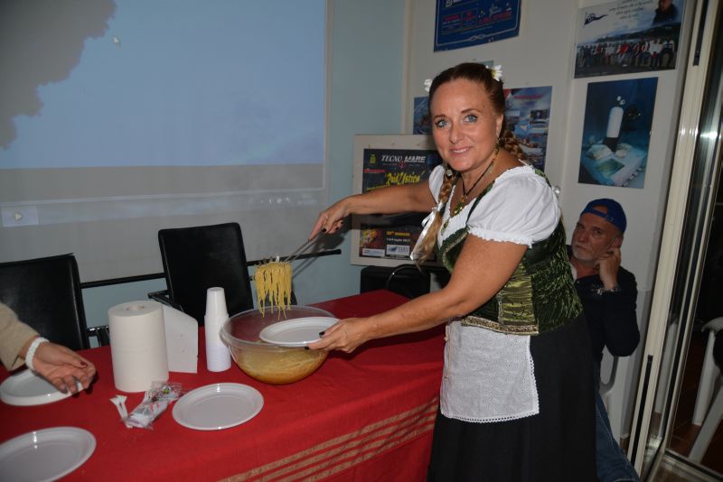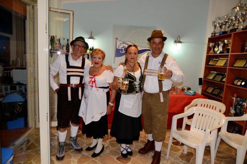 Ma tu guarda che cosa si sono inventati questi ragazzacci del Tecnomare pur di fare bisboccia! Il 28 ottobre 2017 hanno organizzato un Oktoberfest in miniatura con tanto di rappresentanti della famosa manifestazione nel costume tradizionale, in questo caso interpretati dal presidente del club e da un membro del direttivo con rispettive mogli. Una decina di marche della migliore birra, wurstel e crauti come di prassi arrostiti alla brace senza contare gli altri tipi di carne cucinati in vario modo e a chiusura uno strudel chilometrico preparato da uno dei soci. Quaranta e più affamati ospiti sono andati avanti così per tutta la serata durante la quale si è colta l’occasione per rivedere insieme i filmati delle ultime avventure del club in un “rewind” dell’anno che si appresta a concludersi.
