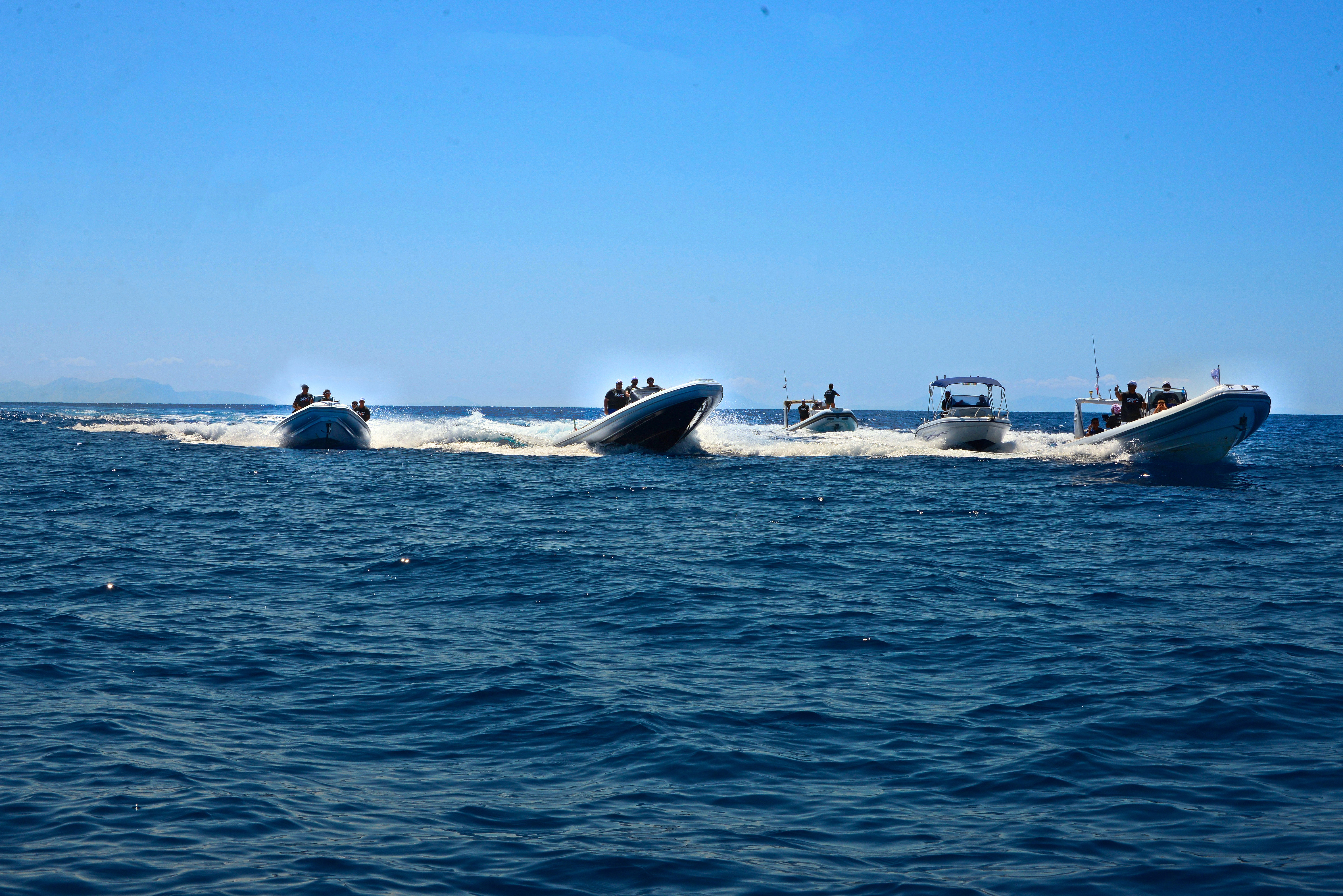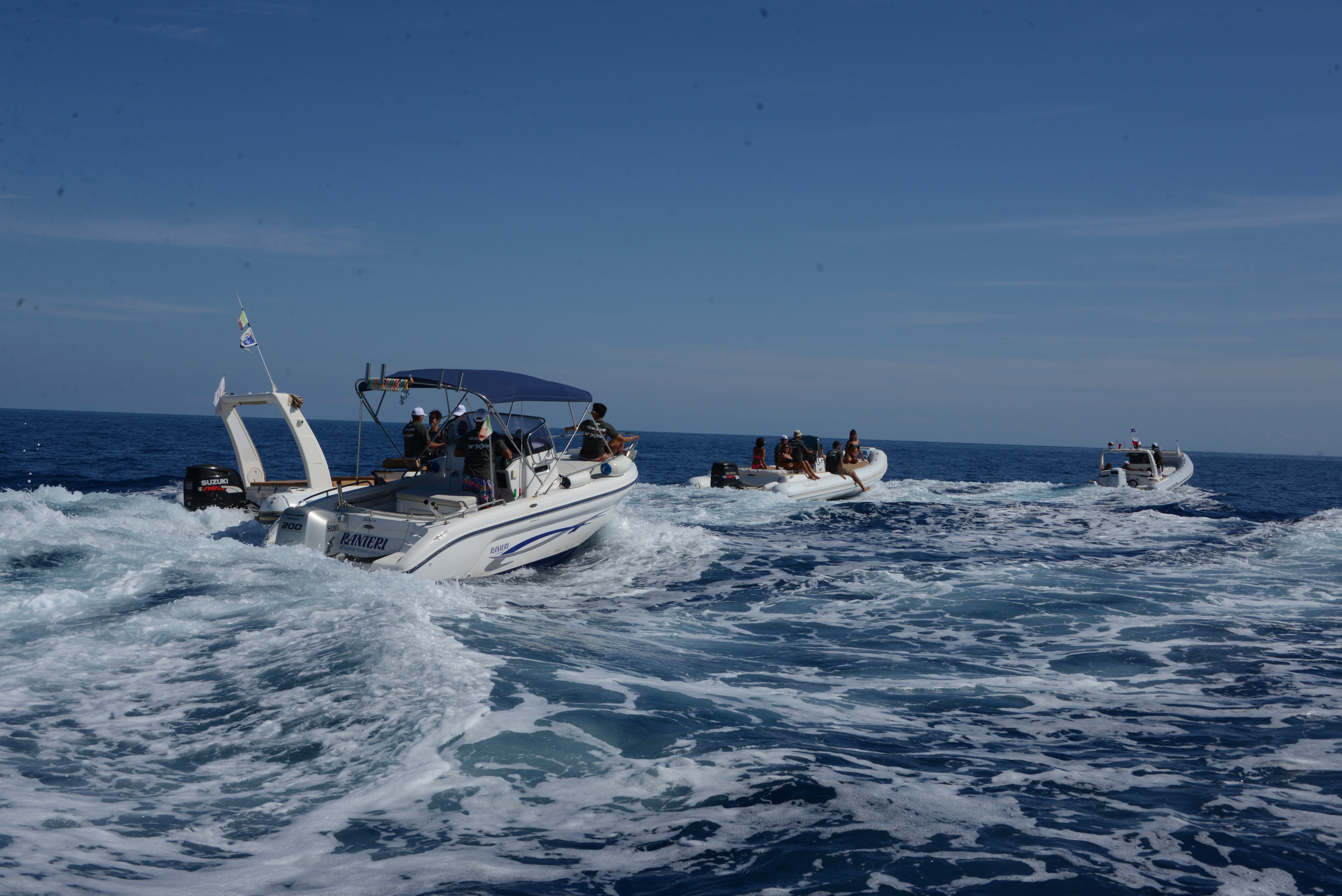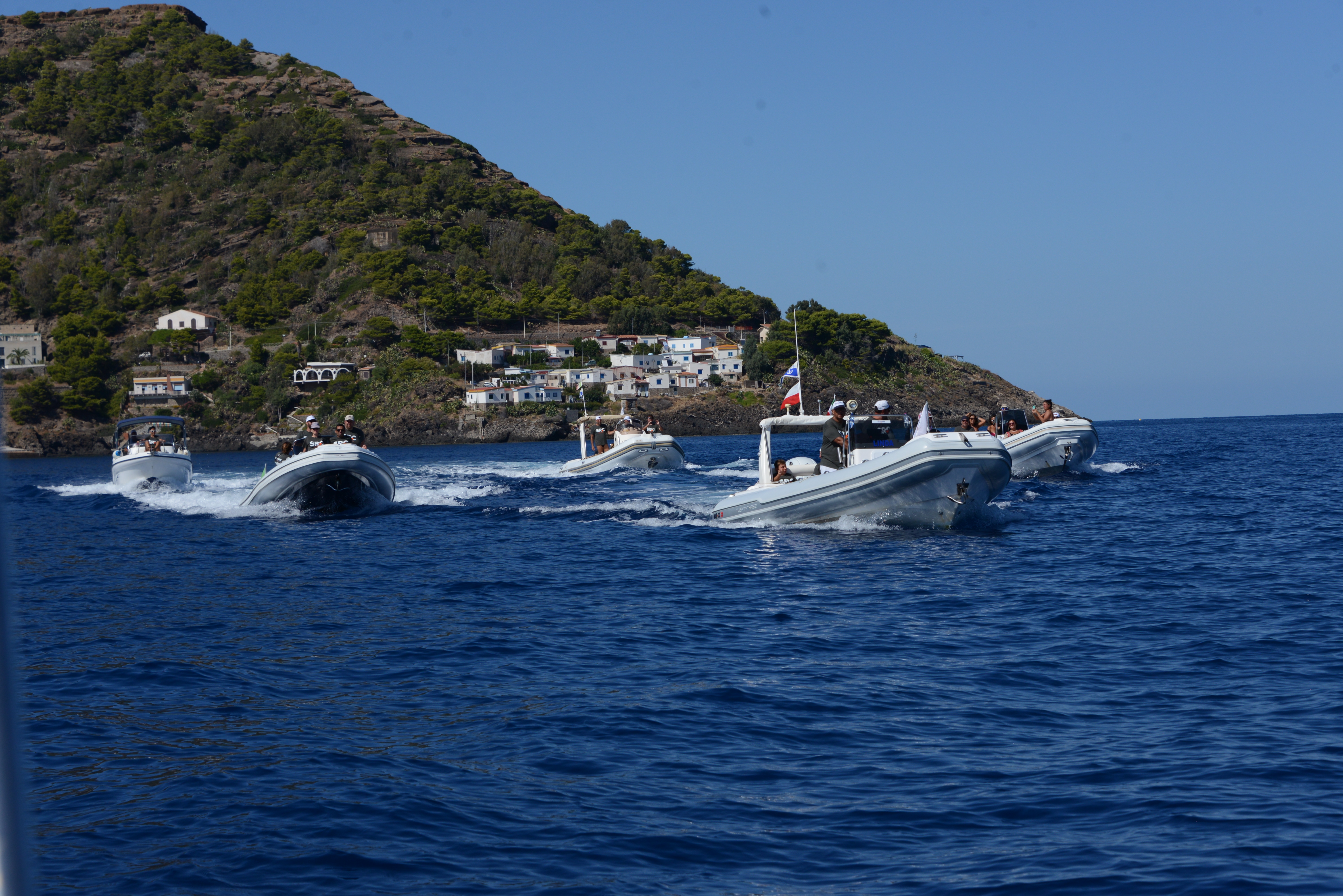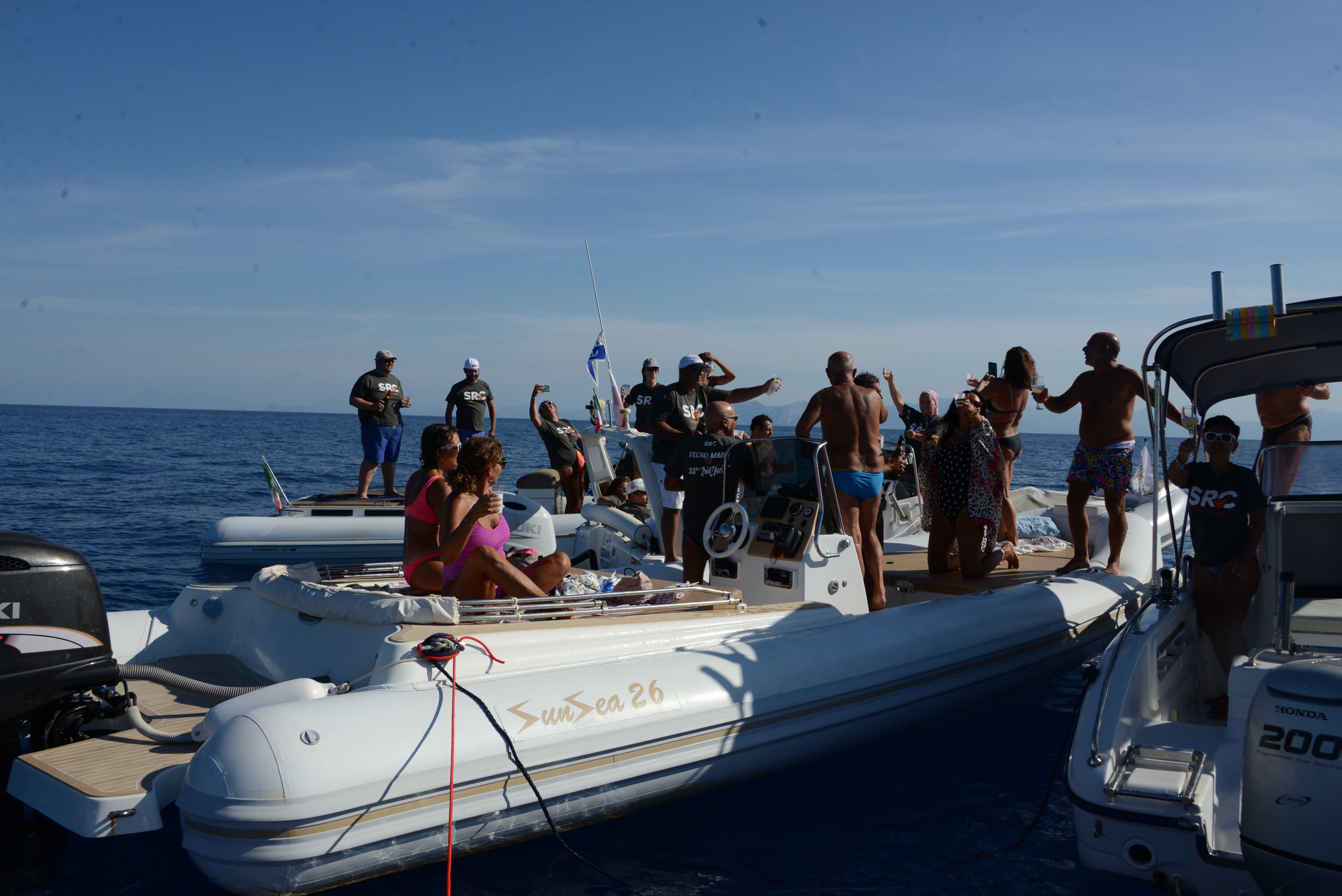 Rimandata di un mese, condizionata da un mare non proprio “disponibile” all’andata ma.la 35^ edizione del RaidUstica ha avuto comunque luogo ed è stata un mosaico di belle emozioni come ogni anno. Vecchi e nuovi partecipanti – quest’anno anche un intrepido equipaggio con una barca – hannno vissuto intensamente il fine settimana dall’1 al 3 settembre senza privarsi di nessuna delle belle esperienze che l’isola regala a tutti i suoi fans. La prima giornata è trascorsa dopo l’arrivo con un bagno ristoratore nel golfetto di Punta Galera dove ognuno ha tirato fuori ogni bendidio dalla propria cambusa appesantita soprattutto dalle bottiglie di prosecco che non mancano mai per festeggiare i giusti eventi; di sera tutti al ristorante “Pizza la piazza” per gustare le specialità del noto locale usticese, l’unico disponibile ad ospitare il numeroso gruppo penalizzato quest’anno dalla mancanza del servizio di ristorazione in tutti i principali centri di ricettività alberghiera dell’isola. La serata si è conclusa per diversi partecipanti con una “chitarrata” nella terrazza di una pensione illuminati da una splendida luna che annunciava il bel tempo dell’indomani. Sabato 2 ottobre il mare ha suggerito dopo un opportuno giro dell’isola di ormeggiare sotto Punta Spalmatore e sino al primo pomeriggio è stato un susseguirsi di tuffi, balli caraibici di gruppo sui gommoni e non ultima, una scorpacciata di ricci appena raccolti sui ricchi fondali del luogo. Rientrati dal mare diversi partecipanti non hanno rinunziato a godersi il tramonto sotto il faro di Punta Gavazzi che ancora una volta ha immortalato lo spettacolo con la sua inconfondibile sagoma. Di sera nuovo appuntamento allo stesso ristorante che questa volta ha preparato una cena interamente dedicata al pesce. L’imbarco dell’indomani con tutti i bagagli è stato assistito con la consueta gentilezza e bravura da Salvo Zanca, personaggio insostituibile al porto di Ustica e per quanto l’ultima sosta a mare abbia diviso la piccola flotta, l’allegria e l’entusiasmo non sono mancati a ciascun gruppo che ha trovato modo di trascorrere le poche ore prima della partenza consumando gli ultimi beni della cambusa quando non ha trovato modo di cucinare a bordo alcune risorse, piccoli polipi per la precisione, del mare usticese. Dimenticate le onde e gli schizzi dell’andata, gli equipaggi hanno dato manetta verso la costa palermitana appena dopo pranzo e, per rispettare una tradizione che si ripete da 35 anni hanno profittato della clemenza di Nettuno per fermarsi a metà percorso per brindare un’ultima volta al successo della manifestazione.
